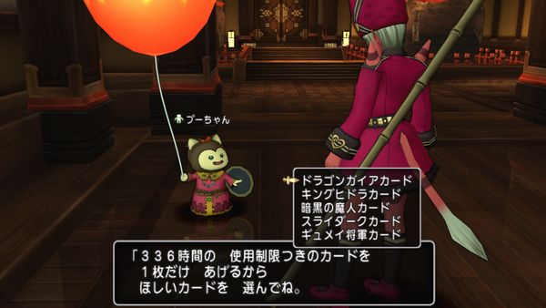 2018-02-13 公式イベント 4日め 明日から本気出す いつになったら旅に出るのだ。今日の記事はいきなり楽屋裏話。来月以降、中の人の身の回りが少し落ち着く予定だったのでブログを始めるならそのタイミングかな、と考えていたのです。それが前倒しになった理由がこれ。過去のイベント報酬で、再入手不可と思われていたあれ。これを置いたハウジング記事を載せたかったwさらに楽屋裏話。メインキャラがDQXを始めたとき丁度ねこのイベントが終了間際で。とりあえず挑んではみたもののバトルの基礎が何もわかっておらず当然ながら全く勝てず。負けが続く中、サポの動きを見て壁とか後出しとかタゲ下がりなどをなんとなく学んで真似して失敗してやっと勝てた時は本当に嬉しかったです。後進に優しく、レベルを上げて物理で殴れば強敵にも勝ててしまう昨今。それはそれで楽しいしありがたいけれどたまにはこういった、ステータス固定のバトルもよきかな、と。ただし魔塔、テメーはダメだ演出も丁寧で、往年のファンほど見所が多かったのではないでしょうか。敵も味方もスペシャルすぎる。とどめはギガデイン!<クエストクリア>「はるかなる釣り道/その者 釣り老師」「ダーマの試練」「旅の終わりと記憶の石」武闘家Lv26→27