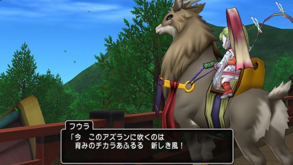2018-02-18 メインクエ 9日め 風にあそばれて 風の町アズラン。エルフ達が暮らしています。一見平和に見えるこの町。よそ者にはわかり辛いのですが近年風が淀んでおり、体の不調を訴えるものすらいるのだとか。人見知りの彼に代わって領主タケトラの館を訪ねます。町のところどころにいるカムシカ。ジャンプすると目で追ってくれてかわいい。風が淀む理由は、風乗りの不在。タケトラの娘、フウラがそれに相応しい資質を持っています。しかしフウラは風乗りになりたくありません。領主として父として、ぶれる揺れるタケトラ。年頃の娘は難しい。フウラと話してみてくれと頼まれます。フウラはお母様の墓参りに出かけたようです。追いかけて風鳴き岬。野菜に襲われるフウラを、カムシカが救いました。カムシカはフウラを慕いますが、フウラはカムシカを嫌います。それもそのはず。先代の風乗りでもあった彼女の母はカムシカの子供を助けるために命を落としていたのです。それでもフウラを慕い、フウラの母のことも慕い続けるカムシカたち。カムシカへの感情はともかく皆のために風乗りにはなってもいいと決意します。風送りの儀(風乗りになるための儀式)の準備を手伝うためイナミノ街道へ。そしてスイの塔へ。ここまで進めて残り15分。塔で絶対迷う自信があるので、続きは明日へ持ち越します。残り時間で武闘家の職クエはじめてみた。ダブルミーニング。ガチ初見です。なんだこれ。<クエストクリア>「偉大なる武闘家の足跡/超天道士の遺産」戦士Lv23→27